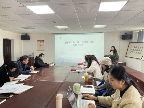 (本网讯)为进一步提升教师教育教学水平,发挥优秀教师的引领和示范作用,促进学院教师专业化成长,11月29日下午,马克思主义学院开展“能力提升工程”之示范课活动,本期示范课由我院专任教师周群老师主讲,主题是《社会公德》。本次活动由马克思主义学院副院长喻小莉主持,马院全体教师参加。