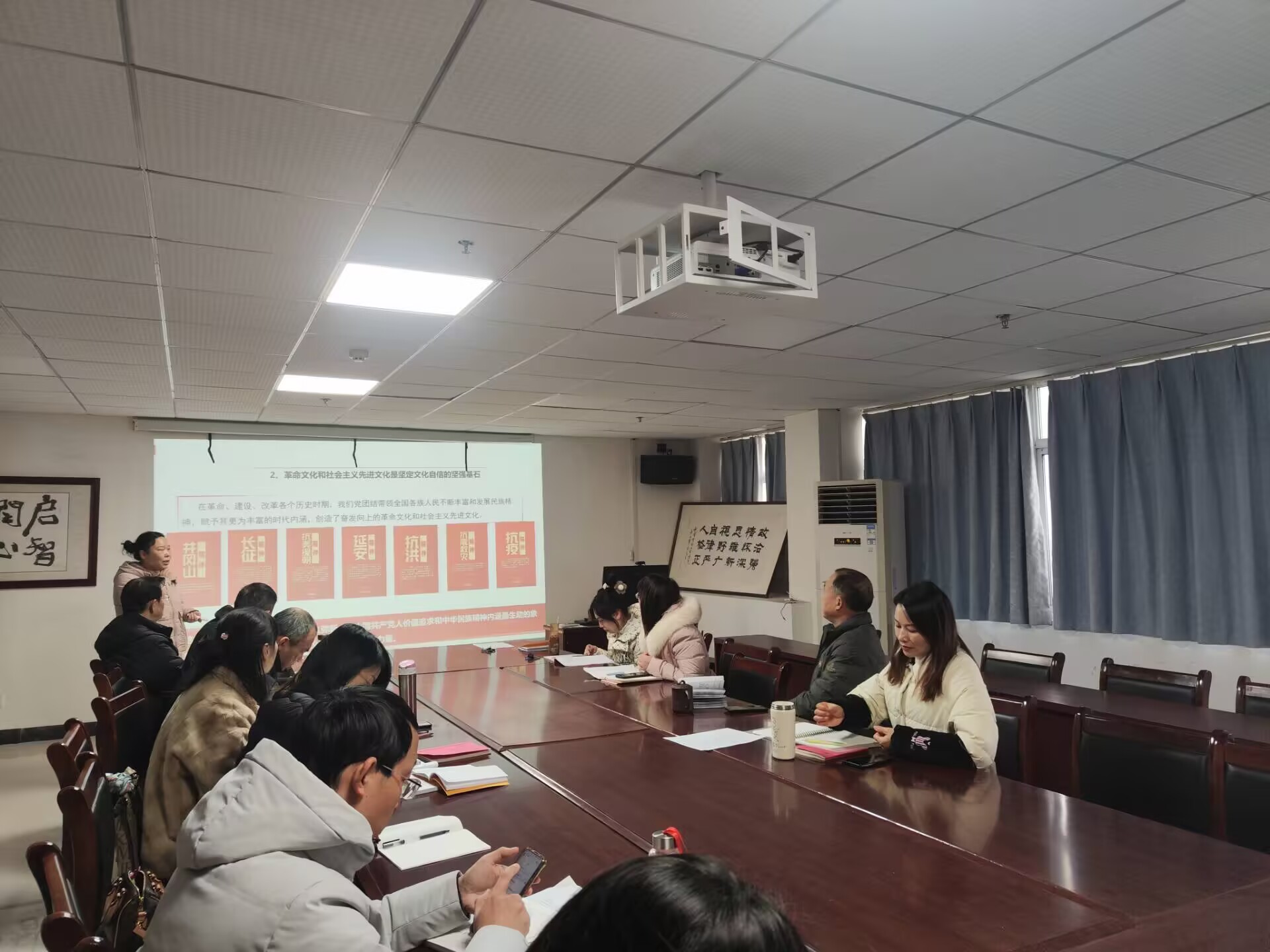 2024年12月25日,马克思主义学院教师教学能力提升系列培训之“能力提升工程”示范课在钱学森大楼805会议室举行,全体教师参会。由丁丹丹老师讲授了《习近平新时代中国特色社会主义思想概论》课程第十章《建设社会主义文化强国》。