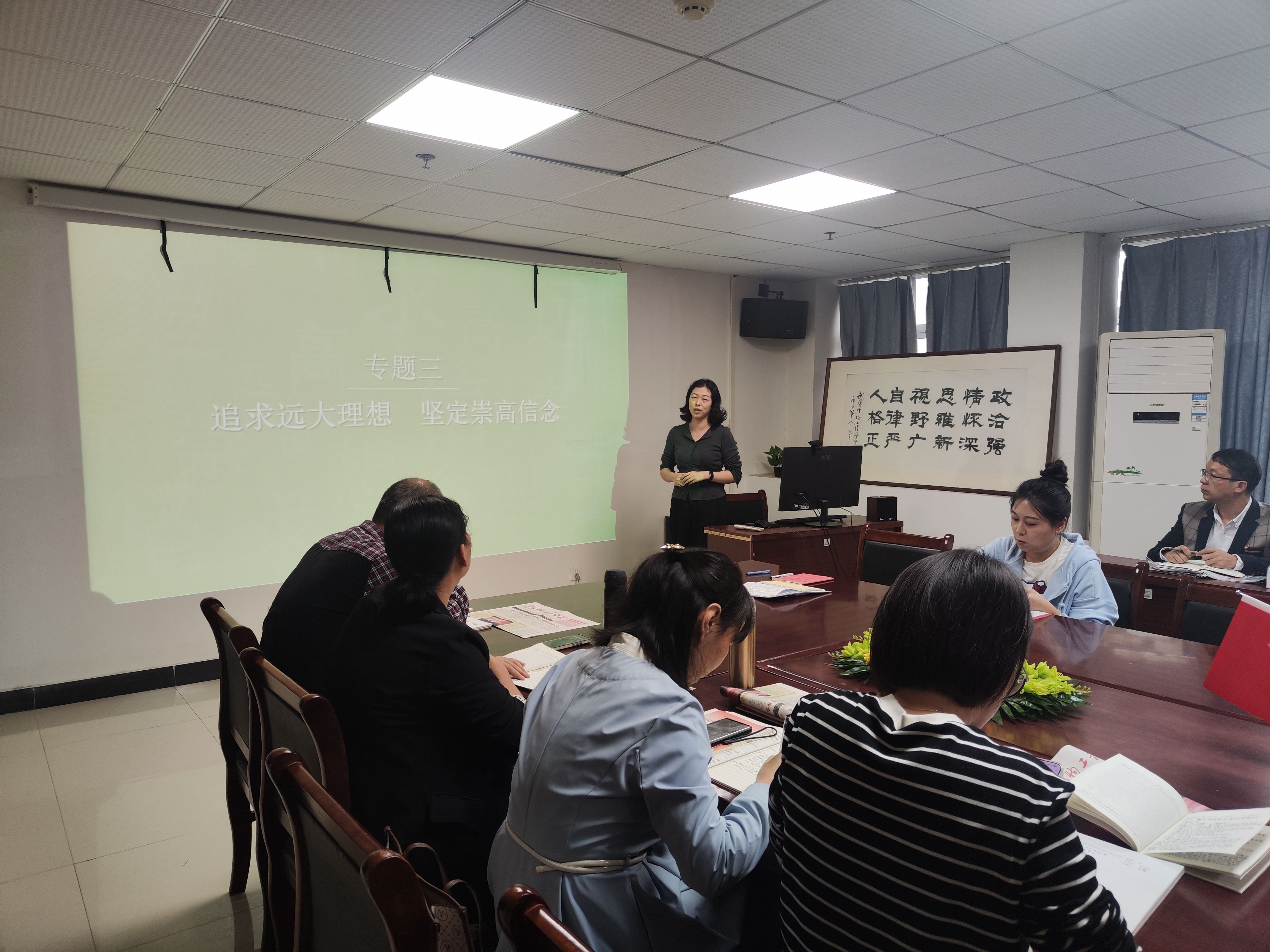 2025年10月15日,本学期第三次“能力提升工程”示范课在钱学森大楼805会议室举行,由赵磊老师讲授《思想道德与法治》课程第二章第一节“理想信念的内涵与特征”,马院全体教师参加了示范课。