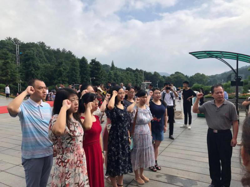 图为全体党员教师重温入党誓词