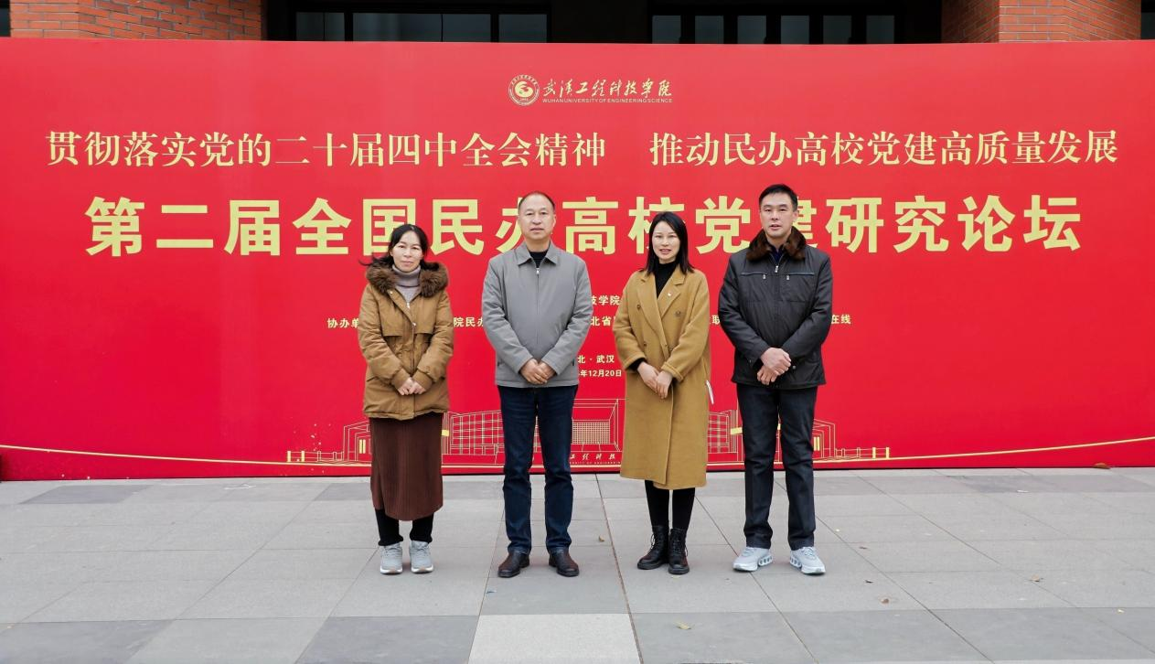 本网讯(通讯员清风)为深入贯彻落实党的二十届四中全会精神,聚焦民办高校党建高质量发展命题,2025年12月20日,第二届“全国民办高校党建研究论坛”在武汉工程科技学院成功落幕。本次论坛由武汉工程科技学院马克思主义学院牵头主办,武汉工程科技学院民办高校党建研究院、湖北省民办高校思政课建设联盟、人民网、北京文华在线联合协办,汇聚全国民办高校党建领域专家学者与实务工作者,共话党建创新路径。武汉生物工程学院马克思主义学院党总支书记孙厚权、党总支副书记朱丹丹以及教师党支部书记甘春晖、周洪涛受邀参会,与全国多地与会代表围绕党的建设理论创新、基层党建实践探索、数字思政赋能党建提质等核心议题,深入交流研讨。