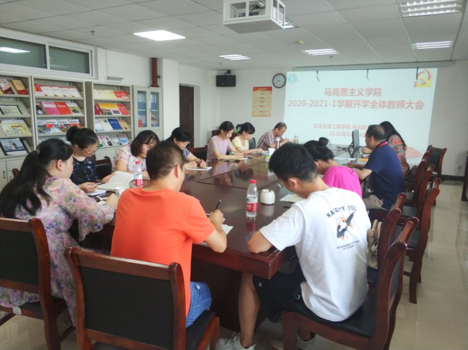 (本网讯通讯员:郭辉)8月24日,马克思主义学院全体教职员工按时报到上班,并于上午召开全体教师会议,会上肯定了上学期线上教学的成绩,要求教师迅速进入正常教学状态中,不断探索混合式教学新模式,布置了预备周相关工作,要求全体教师要尽快进入工作状态做好教学准备工作。