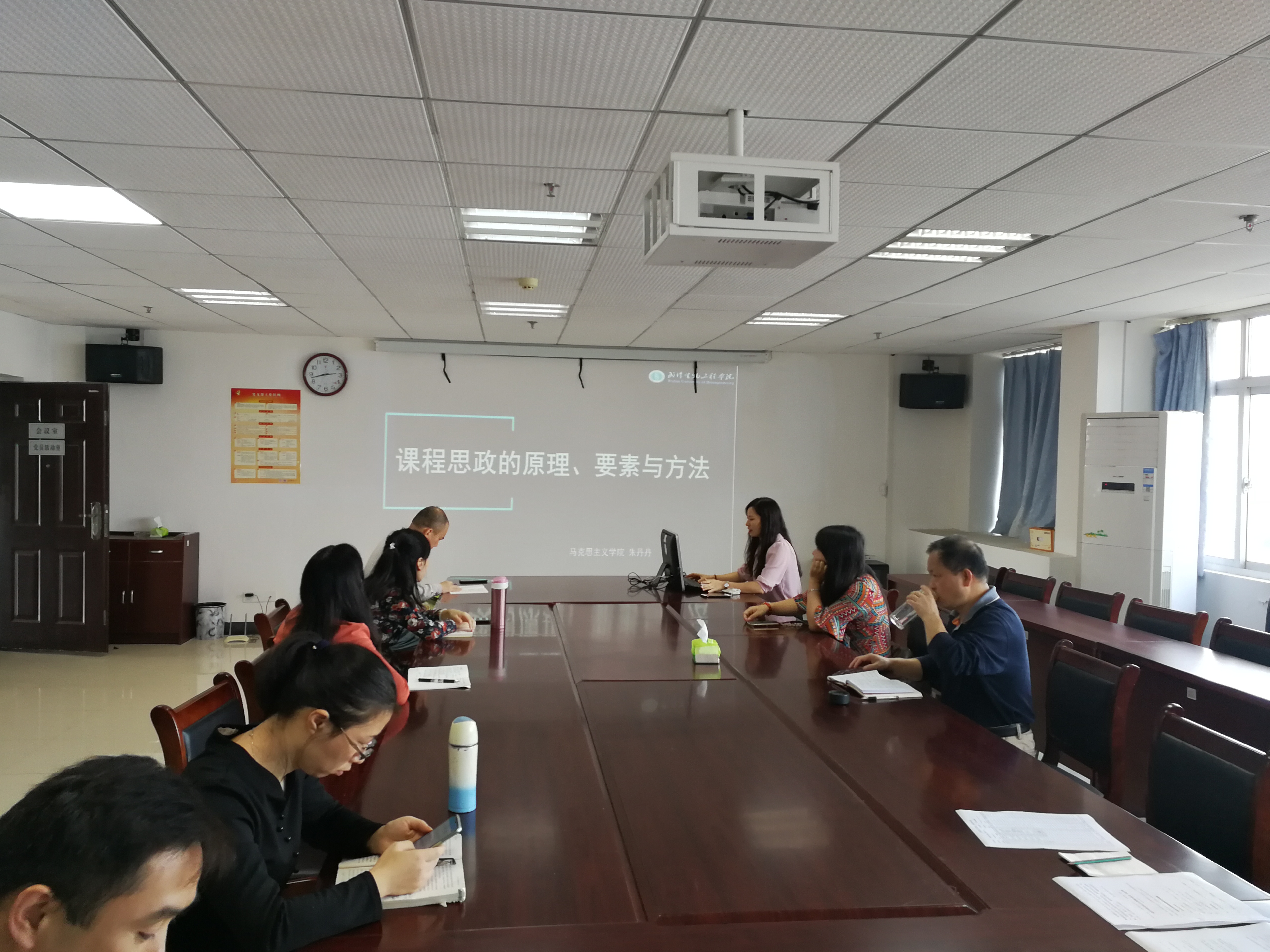 (本网讯通讯员:高春月)9月30日下午,马克思主义学院组织全体教师开展“课程思政”下基层宣讲集体备课活动,朱丹丹老师主讲,其他老师依次发表改进意见,马院领导总结指导。吸收老师们意见修改完善后,将及时报送教务处,并根据学校统一安排,开展宣讲活动。