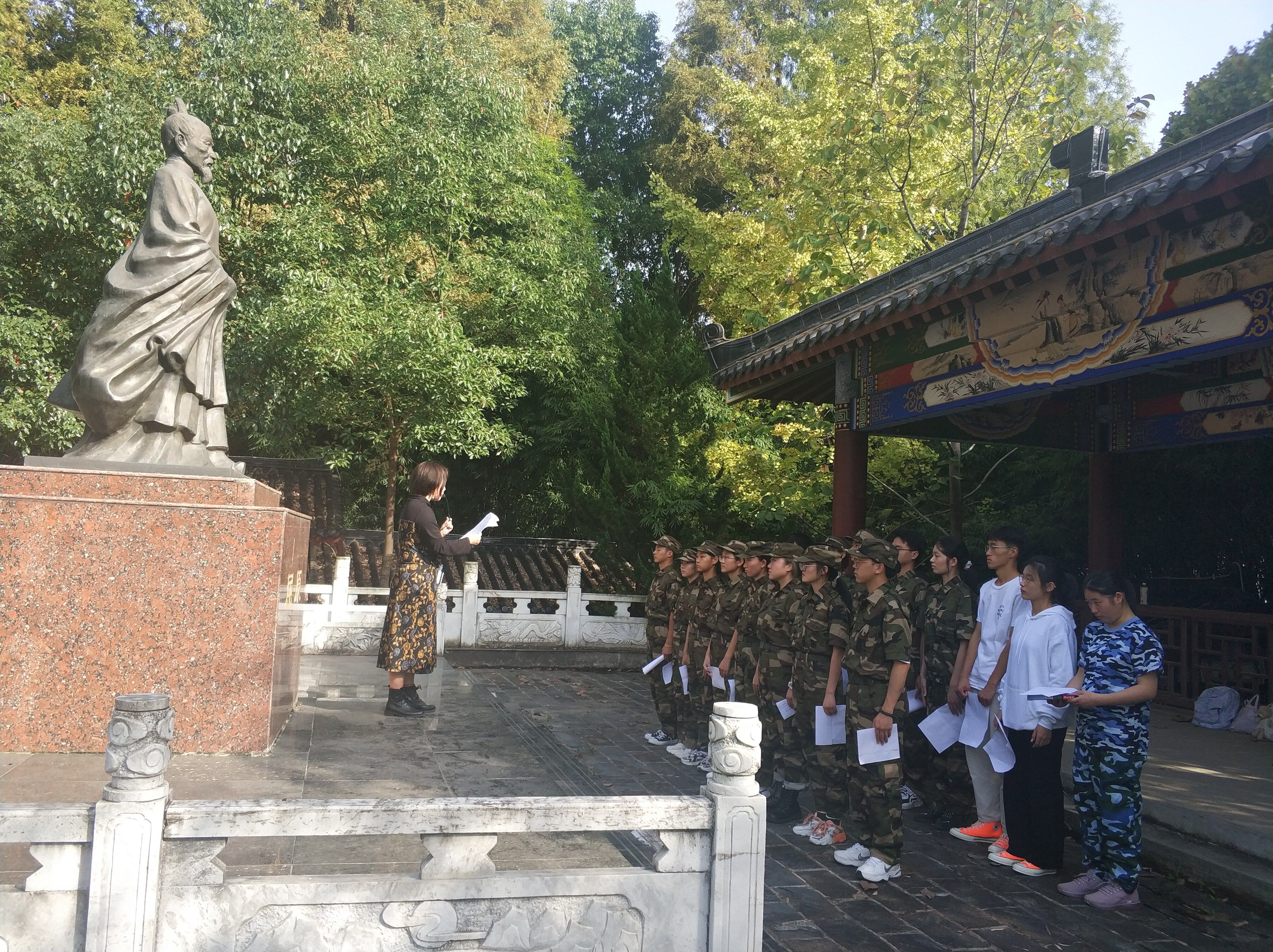本网讯(通讯员:郭辉)“红军不怕远征难,万水千山只等闲。……”朗朗诵读的声音从求索书院传来。10月22号下午,马克思主义学院在求索书院开展爱国主义教育第二课堂活动,本次活动主题是继承和发扬长征精神。活动由盛睿娴老师主持。盛睿娴老师介绍了长征精神的内涵,讲述了长征途中的感人故事,学生现场集体朗读了毛主席诗词《七律 长征》,聆听了由此改编的革命歌曲。