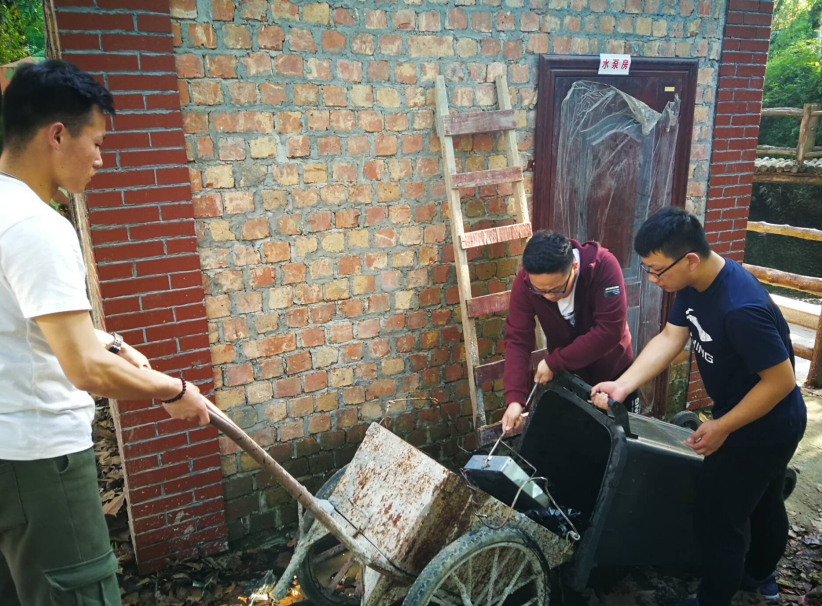 图为师生清理静思园最脏的地方