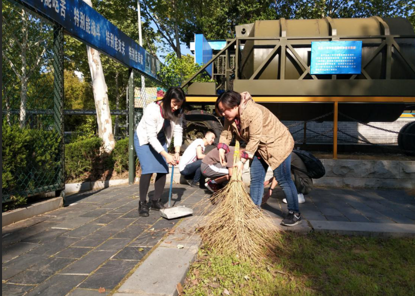 图为师生积极劳动