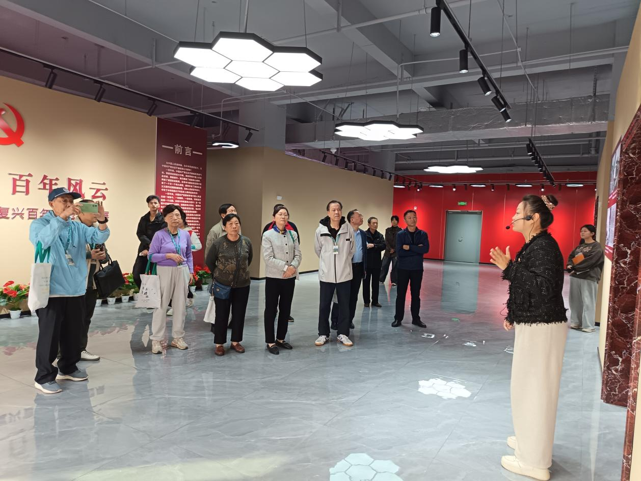 离开延安精神教育馆后,老同志们在马克思主义学院教师的引导下,继续参观世纪风云馆。不同于前者的红色精神主题,世纪风云馆以“百年中共党史精神谱系”为脉络,通过不同历史时期的实物、文献与老照片,串联起各历史阶段的精神坐标。参观期间,“聚智” 氛围格外浓厚,学者们围绕 “馆内为何未介绍‘大寨精神’”“‘大寨精神’是否属于党史精神谱系” 等问题,展开了热烈讨论。