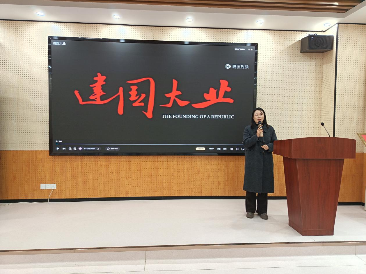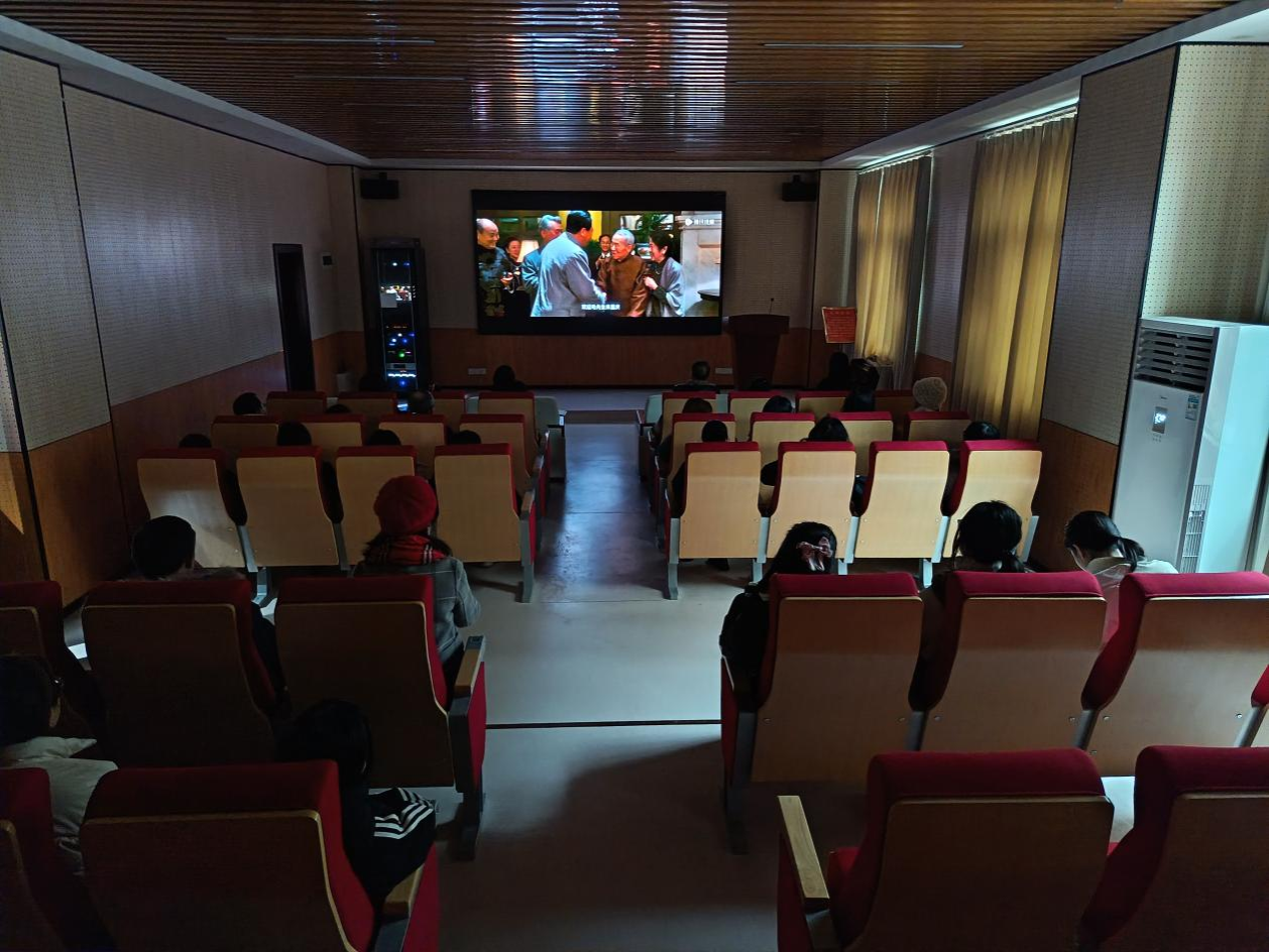 本网讯(通讯员许大卉)2025 年 12 月 24 日下午,马克思主义学院(延安精神教育馆)以“回望建国历程、传承红色基因”为主题,组织全体教师及“两馆”志愿者、法律协会、瑾瑜历史协会学生代表观看影片《建国大业》,引导师生铭记历史、凝聚奋进力量。