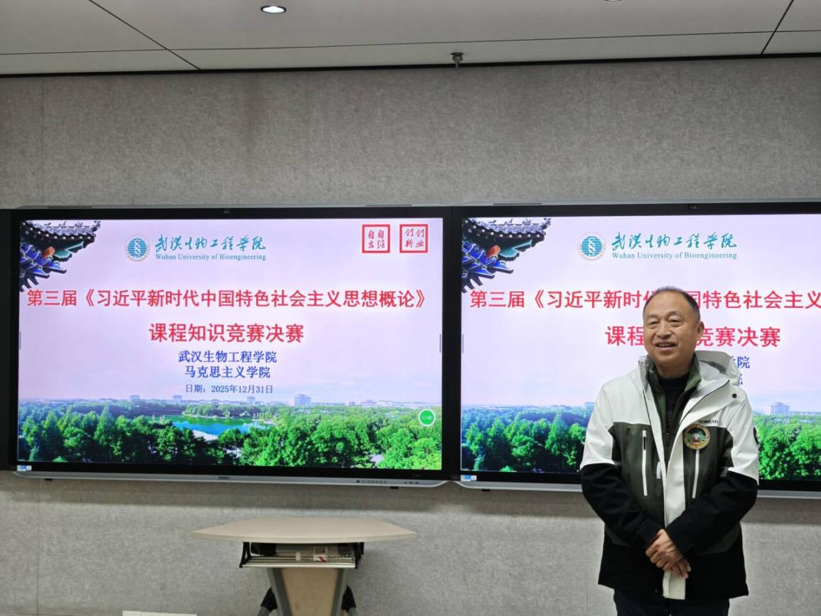 竞赛尾声,马克思主义学院院长孙厚权教授进行了点评发言。他对参赛青年学生代表展现出的文化自信风采与抢前争先劲头给予高度肯定,认为此次竞赛充分体现了师生课上教学相长、课下辛勤备赛的良好风貌,深刻诠释了以赛促学、以赛领学、以赛比学的活动真谛。同时,他寄语我校大三学子,在期末备考中要以习近平新时代中国特色社会主义思想为指引,武装头脑、振奋精神,力争交出圆满答卷;未来更要在武生院“大思政课” 建设、校园文化培育、长江新区区域发展、武汉高质量发展及湖北省支点建设等各项事业中,主动担当作为,贡献青春力量。