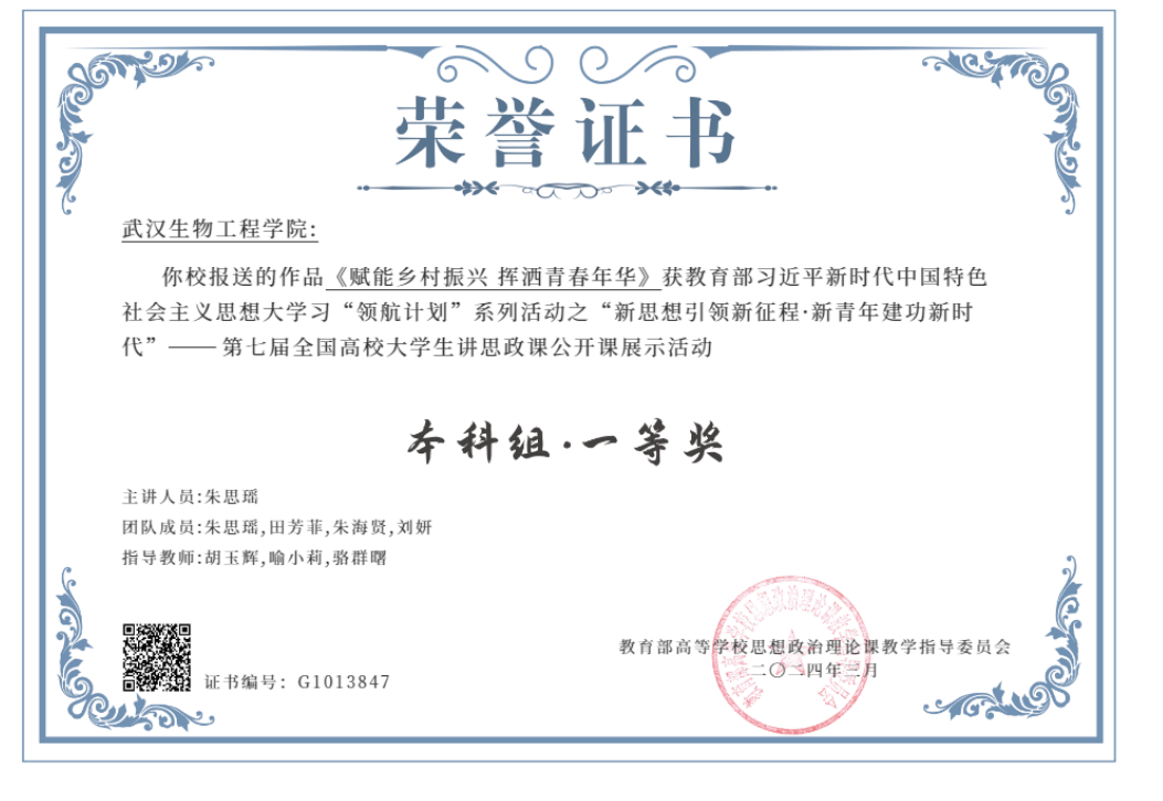 图7:第七届全国高校大学生讲思政课公开课展示活动本科组一等奖获奖作品和证书