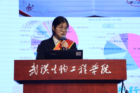 国家励志奖学金获奖代表、软件工程学院2022级大数据管理与应用1班陈晓虹从学习、思想、实践、感恩等四个方面讲述了她面对逆境,学会坚强与自立,不断成长与进步的故事。
