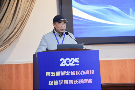 我校理事长、校长余毅教授在致辞中对与会嘉宾表示热烈欢迎,并简要介绍了我校办学历程与发展成果。他强调,管理学院坐拥风水宝地——学府广场,秉承“管以弘道,理以求真”院训,培养出大批杰出人才与先锋榜样,并在人工智能与专业建设深度融合等领域持续进行前沿探索与实践。他真诚希望在座各位院长与专家能够汇聚智慧、分享经验,为我校的经管学科发展提供宝贵指导,协力推动我校人才培养质量的全面提升。