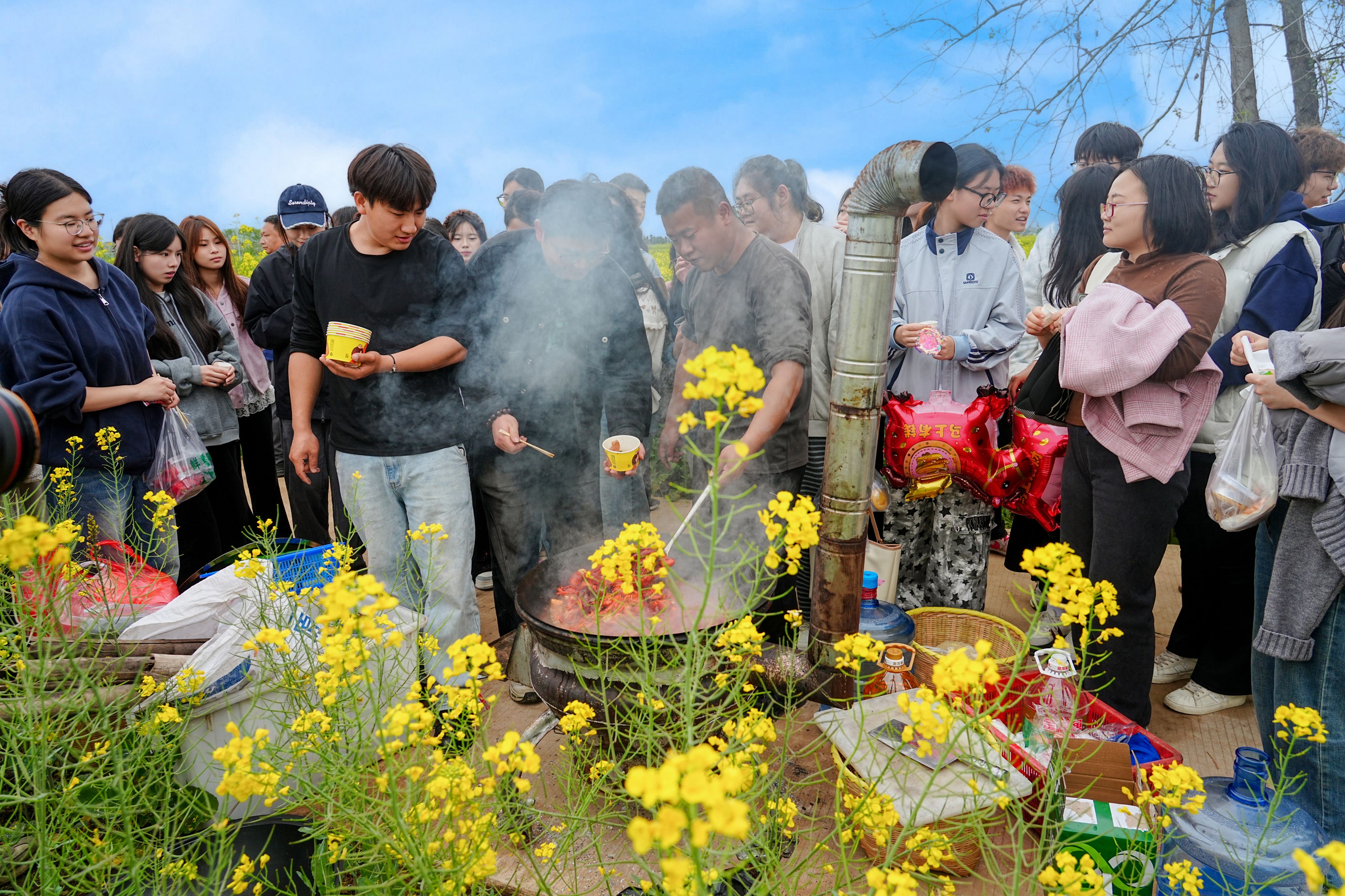 此外,学校还特别设置了“农耕体验区”,邀请师生们亲自下田,体验翻土、播种、浇水等农事活动,感受“粒粒皆辛苦”的深刻含义。艺术学院的学生们则在花田边支起画板,开展“妙笔生花”绘画写生活动,用画笔记录下这美丽的春光。