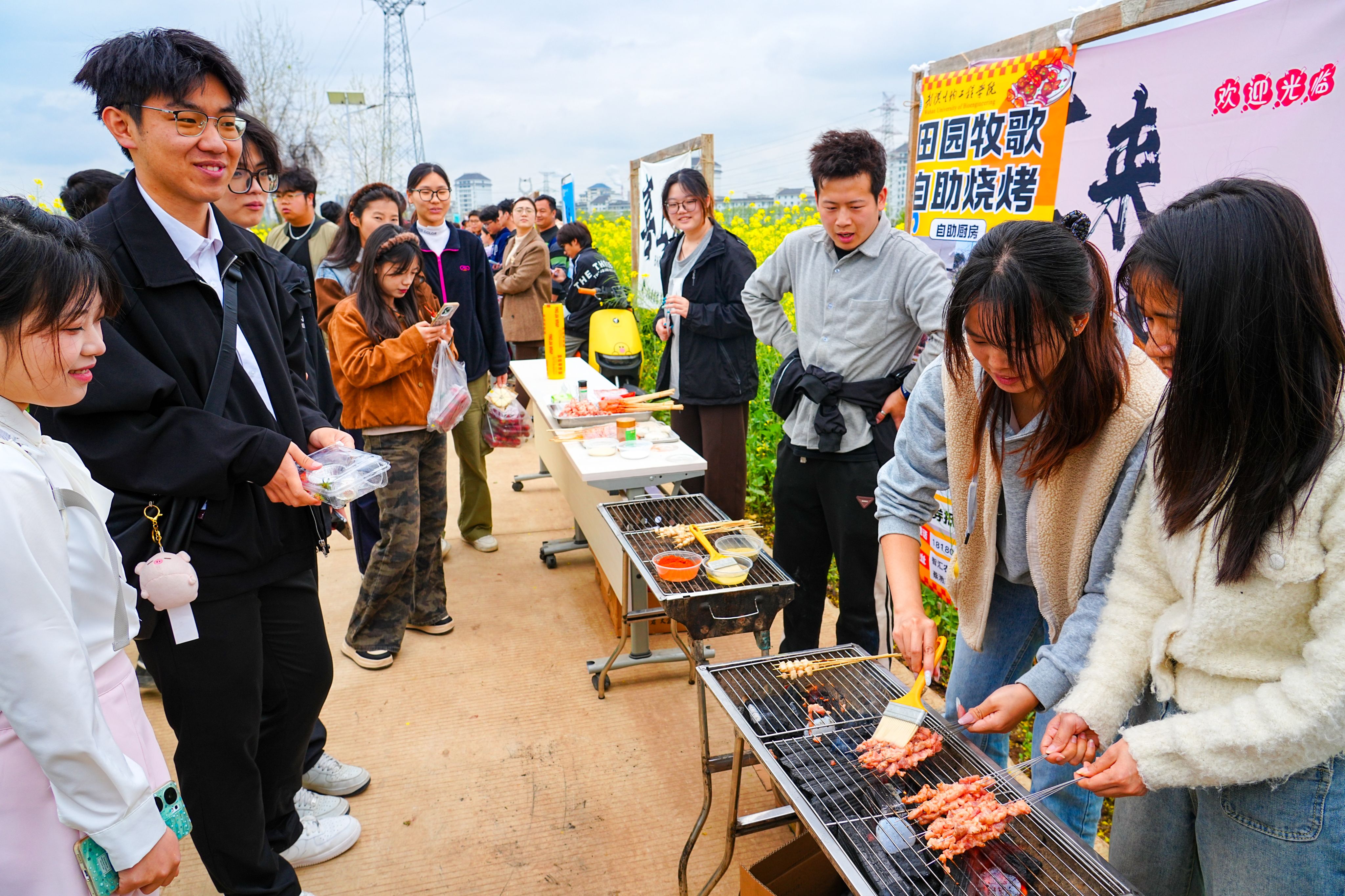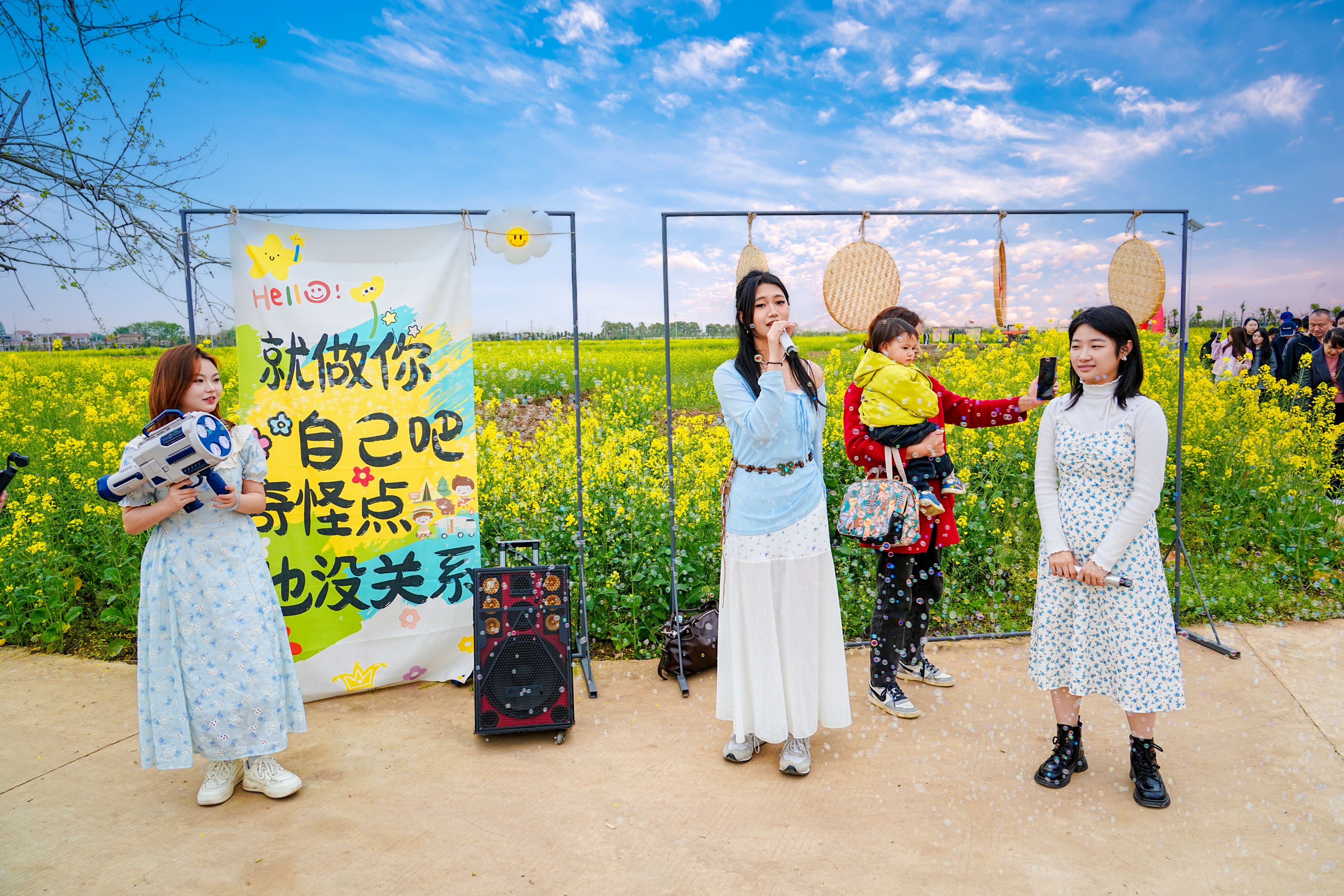 在预热阶段,校园内已掀起了一股“春日热潮”。文学院、艺术学院、音乐学院率先发力,在花海间进行诗歌朗诵、歌曲演唱与绘画创作,相关短视频在社交媒体上迅速传播,引发了广泛关注。傍晚时分,音乐学院的师生们在花田边架起乐器,举办《田园乐章》不插电音乐会,悠扬的旋律在春风中飘荡,为校园增添了浓厚的艺术氛围。长河农业公司推出的垛田划船、捉鱼摸虾、花田垂钓等互动体验项目深受欢迎,师生沉浸式体验花田乐趣,共享春日美好。