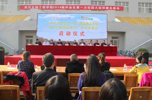 校长张端品教授在致辞中对出席招聘会的各位领导和来宾表示衷心感谢和热烈欢迎。他说,“光谷生物城进高校”活动走进武汉生物工程学院,为我校师生尤其是应届毕业生更好地了解生物城以及地方生物产业需求提供了良好的机遇,进一步密切了光谷生物城与我校的联系,为校企双方打开了深入交流与合作的大门。他希望同学们能够炼好本领,把握机会,找到自己的理想岗位,跨出人生事业的第一步。