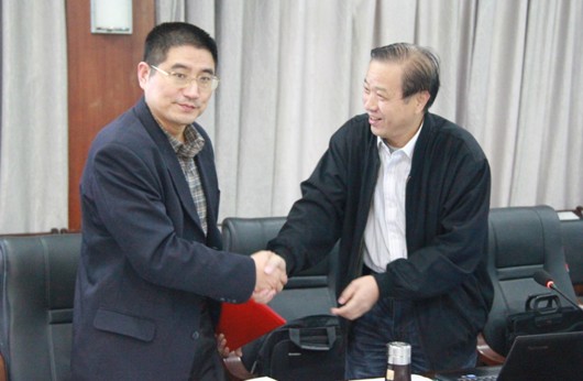 校领导李友清(右)为江珩教授(左)颁发聘书
