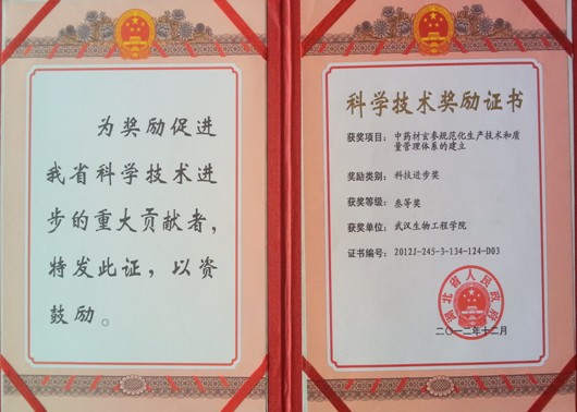 本网讯(通讯员 高崇)日前,我校制药工程系孙芳老师参与的“中药材玄参规范化生产技术和质量管理体系的建立”项目,在湖北省2012年科学技术奖励中获得科技进步三等奖。