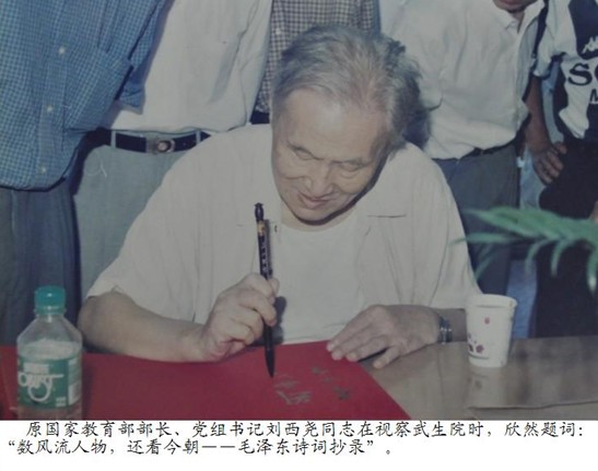 刘老曾任国家教育部部长,在其任上正是我国恢复高考制度的重要时期。他不仅有强烈的教育情结,还有很多先进的教育理念,给武生院人以深刻的启迪,促进武生院各项事业的健康发展。刘老最近几年因病不能外出,学校理事会领导曾多次前往刘老家中探望。