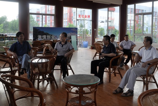 本网讯(记者 任丽琼 摄影 肖亚慧)7月19日下午,省教育厅副厅长张金元、省教育厅高校学生处处长谢新松、副处长段旭辉一行来我校考察调研创业基地建设情况和大学生创业教育工作。