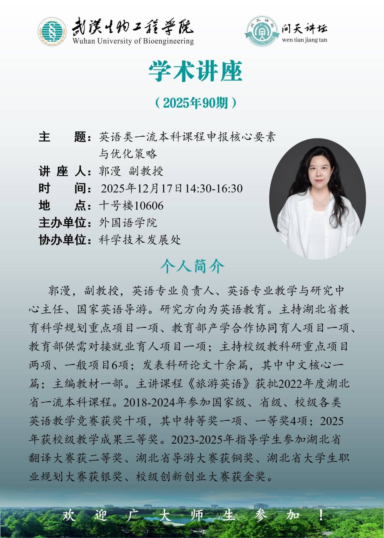 【问天讲坛】郭漫副教授作题为“英语类一流本科课程申报核心要素与优化策略”科研讲座预告