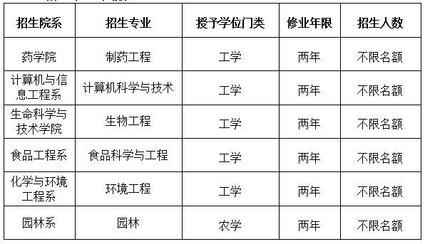 (一)制药工程、计算机科学与技术、生物工程、食品科学与工程、环境工程5个专业招生对象:我校2015级非工学类专业全日制普通本科生(可申报的专业有:生物技术、医学检验技术、中药学、园林、园艺、信息管理与信息系统、公共事业管理、市场营销、财务管理、物流管理、文化产业管理、商务英语、英语、动画、环境设计、视觉传达设计、产品设计、社会体育指导与管理等18个专业);