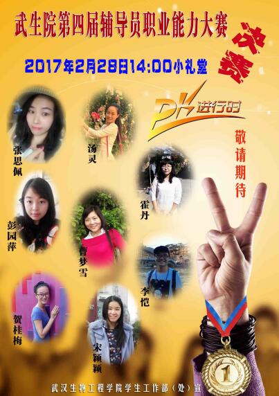 在上学期初赛笔试环节中脱颖而出的八名选手:生科院彭园萍老师、药学院张思佩老师、管理学院汤灵老师、计算机与信息工程系曹梦雪老师,建筑学院李恺老师,机电学院霍丹老师,艺术系贺桂梅和宋颖颖老师参与本次大赛的最终角逐,分别以微视频展示各自主题班会的特色内容,案例分析展示各自的临场应变和处事能力。