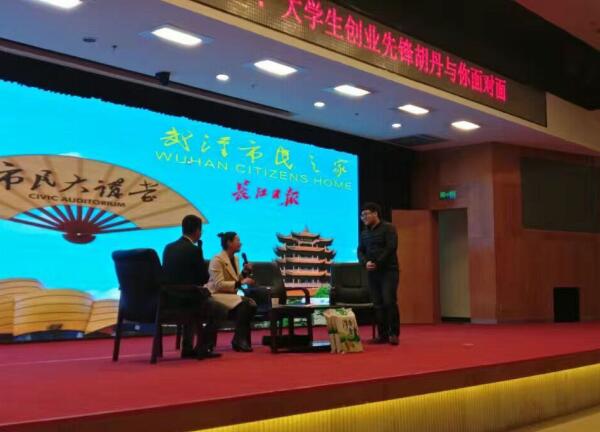 本网讯(通讯员 颜青 李振豪)3月4日下午,武汉市民大讲堂第156期邀请武汉永旺农产品专业合作社理事长、大学生创业先锋胡丹讲述创业故事。随我校师生代表前往聆听的生命科学与技术学院医学检验技术专业2015级学生李俊杰抓住机会,大胆走到台上向胡丹毛遂自荐,表示自己所学技能恰好可以在大米的生产检验工作中找到用武之地,得到胡丹的肯定与鼓励。