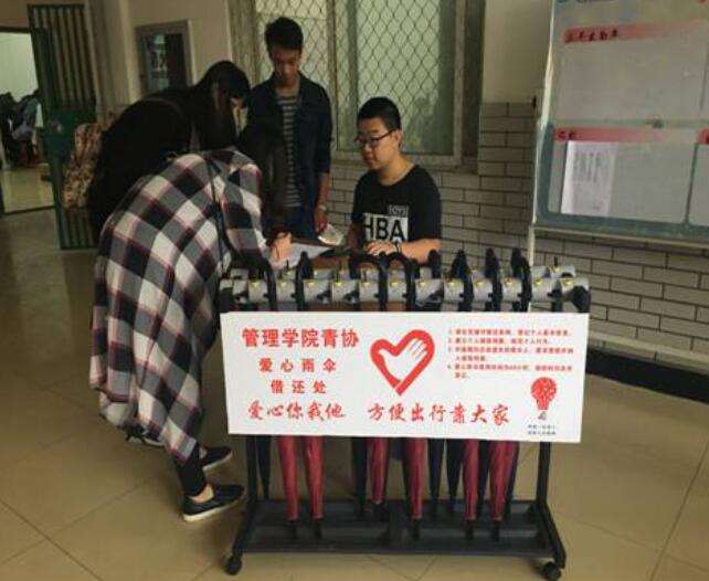 据悉,“爱心公益雨伞”活动系由管理学院青年志愿者协会主办,志愿者们轮流值班管理雨伞,借用雨伞的人,只需在“爱心公益雨伞”摊位登记相关信息,并在48小时内将雨伞归还至原处即可。2周内虽然仅下过两三次雨,但借用雨伞的人仍然达到40余人。
