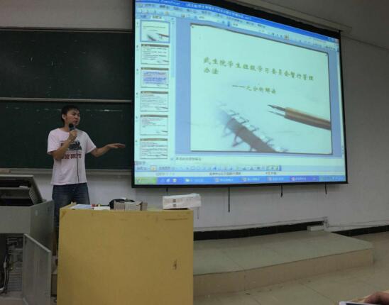 会上,新生辅导员高亮老师用精彩的ppt给同学们介绍了学校寝室长轮岗制度的目的意义、选拔方式、岗位职责和管理模式,以及学习委员会制度成立的宗旨、成员组成、工作职责等,并就新生们提出的问题进行了沟通、解释。场面气氛十分活跃,现场不少新生提出想担任第一届的寝室长和班级学习委员会成员。