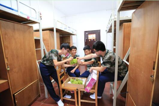 建筑工程学院工程造价专业2016级新生李顺结束军训,回到寝室不久就收到了学校发的葡萄,他与寝室的小伙伴迫不及待地清洗尝鲜。“我打小就爱吃葡萄,真是发到我心坎上去了。来学校的第三天就收到这么特别的礼物,真是温暖而贴心。”
