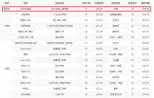 本网讯(通讯员 张燚 )6月17日晚,我校建筑工程技术平台BIM创客园团队在东南十省市BIM算量网络认证大赛中夺得本科组冠军,同时获得湖北省钢筋算量前三甲,土建算量也进入前三。