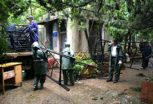 据正在柏园现场带着搬运工冒雨抢运物品的中心主任陶加新介绍,按照学校要求,今年“松、柏、梅、桂”四园将改造成高规格、高舒适度、高性价比的二人间。陶加新主任说,为确保按期完成今年暑假的学生公寓改造任务,我们正在与时间赛跑,下点雨没关系,我们照样做事,不能因为天气原因耽误了工期,影响学生开学入住。