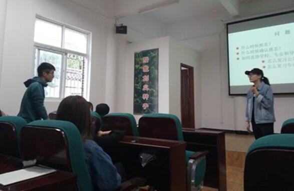 12级园艺班的林小月和陈恒同学给学弟学妹们介绍考研经验,并详细解答了有关考研报名、专业选择、复习和面试等各方面的问题。会场中互动频繁,讨论氛围热烈,为13级园艺班同学2017年考研复习和心理调适起到了良好的辅导作用。