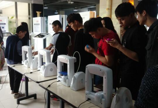 在公司工程师的解说下,师生们参观了3D打印机器生产过程,其中由该公司打标事业部研制的牛仔激光雕花系统设备,能运用激光工艺技术,改良牛仔服饰的设计细节色调,蚀刻各种图案,呈现复古、渐变、烟熏等各种效果。在3D记梦馆产品展示区,各式各样的3D打印作品,如微缩的工业模型、建筑沙盘、时尚配件、艺术雕塑、工艺礼品等,尤其是将普通人物肖像转换成了逼真三维立体人像雕塑的微缩真人人像模型,令人印象深刻。