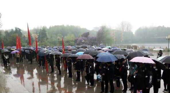 绵绵细雨中,师生又排着整齐的队伍走向吕波英雄墓,肃穆而立,敬献花篮,默哀三鞠躬,深情祭奠为抢救落水少年而英勇献身的英雄校友吕波。