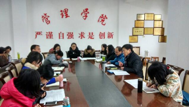 本网讯(通讯员 李芯慧)1月12日下午,管理学院组织全体教师认真学习李友清校长《把握转型契机 奋力跨越发展 努力创建特色鲜明的高水平应用型大学》的专题报告,就扎实推进转型发展、切实提高教学质量、努力创建特色学院展开深入研讨。