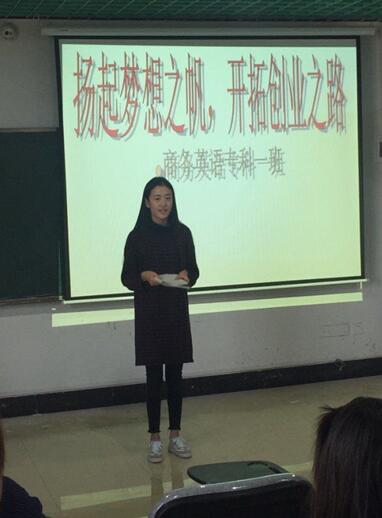 主题班会上,参加“创客种苗”竞选的同学们纷纷上台发言,阐述个人对“创客”的理解和自己申报“创客种苗”的优势,并展示了各自的创新想法和创业思路。15级商务英语本科2班连秋平同学表示,自己是个爱拼搏、愿奋斗的姑娘,也立志在自主创业这条路上坚定地走下去。15级英法2班的丁力同学在班会上说出了自己的创业设想:在唯美的河畔开一家安静的咖啡馆,并在一旁配备摩天轮为顾客提供观赏风景的浪漫平台。15级英法1班的陈杏同学一入校就参加了一项创业项目。她认为,作为新时期的大学生,既要学会利用时间,学习专业知识,掌握专业技能,同时还要结合自身的条件,明确创业方向,敢于尝试,勇于挑战自我,有梦想就要去实现,不要害怕失败。创业的路上会有很多困难,关键是要坚持自己的梦想,脚踏实地,一步一步靠近自己的目标。