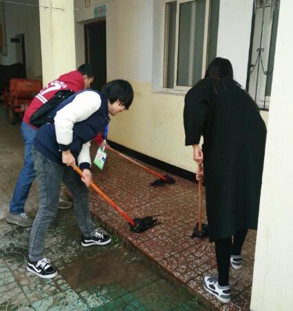 志愿者们打扫走廊