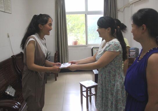 姚贤民代表我校教师向永青卓玛(左)表达爱心
