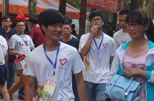 社团迎新志愿者热情迎接前来报到的新生