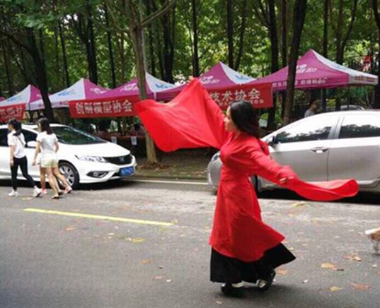 楚韵华服社彭娜同学身着大红色曲裾进行汉舞表演