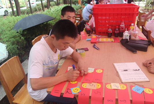 志愿者王和鸿说,制作编号条时最先想到的是白纸条,因为它制作方便,后有同学提议加一个卡通笑脸,大家一致说好。