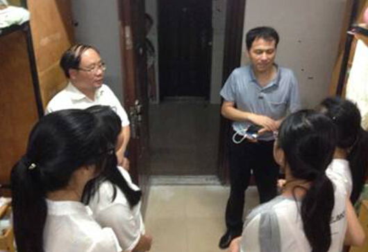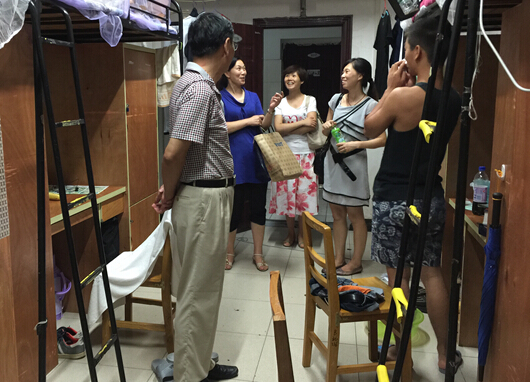 管理学院院长王海棠教授、党总支书记孙玉巧博士、副院长丁庆勇博士分头深入该院学生宿舍走访看望新生,并对宿舍的安全事项进行了提醒。在园丁二舍三楼一间新生宿舍,王海棠院长还和新生们一起动手把书桌搬进有空调的内间,顿时使整个寝室面貌焕然一新。他还向学生和家长们讲述了自己大学时期的趣事,引来大家的阵阵欢笑。