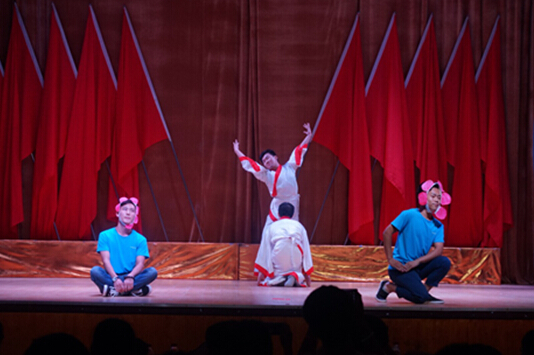 晚会在帅哥靓女创意T台秀中拉开帷幕。二班学员分别用东北、武汉、青岛、四川、天津等地方言朗诵《再别康桥》,“波涛里头的影影儿,在我心口头打璇璇儿”,十足的方言味引得全场观众捧腹大笑。相声《论勤学》、《哪吒闹海》等在忍俊不禁的说逗中透漏读书识字的重要。新式诗朗诵《我的滑板鞋》、盛情的歌曲《青春祖国》、闪耀的单人舞曲《模特》等精彩节目赢得台下观众阵阵掌声。团省委学校部办公室主任姚雪和辅导员“男神”叶云玲合唱《把我唱给你听》将晚会推向高潮,最后,我校校团委老师也登台献唱,我校16名来自各院系的大学生骨干培训班志愿者合唱《相亲相爱》,更感染台下的学员一起登台“嗨歌”。