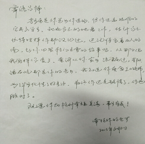 罗全书记此举影响到全系师生,每位老师自发效仿,亲笔“情书”致毕业生,这些毕业‘情书’或幽默风趣,或煽情感人,或调侃脱俗,或言辞恳切,但字里行间都透着老师对学生的殷殷期望和真挚祝福。