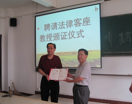 近期,为推进学校思想政治理论课教育教学改革,加强大学生法制教育,学校聘请了王志明等多位校外资深律师担任客座教授。开课前,校长李友清还为王志明颁发了客座教授聘书。