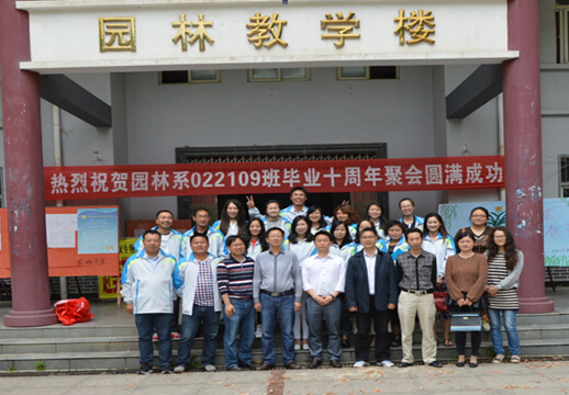 本网讯(通讯员 王春梅)十年前,他们挥泪告别晨光湖;今天,他们带着家人幸福的回到母校,举办毕业十周年聚会,表达对母校的浓浓思念。5月2日下午,园林系022109班20余名校友在母校欢聚一堂,共话母校情、师生情、同学情。园林系丁健、王春梅、刘中兵、杨海林、张思、吴英山等老师高兴地参与聚会活动。