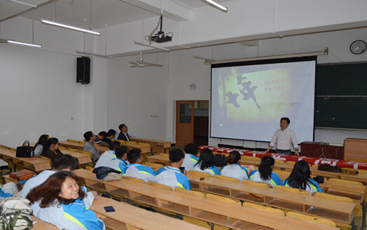 两点整,校友们穿上学弟学妹的校服,走进园林楼阶二教室,回味大学时代的课堂。校友李旭东介绍了参加聚会的老师和学生,播放大学时代的照片集,引起大家的共鸣。园林系党总支书记、副系主任丁健博士向校友表示感谢和慰问,介绍学校和园林系的发展情况,希望校友们在不同领域、不同岗位上取得更大成绩,为母校争取更大荣誉。随后,园林系老师们为校友播放了校园风光片、园林系宣传片,并赠送学校画册等资料,校友们纷纷为母校十年的发展成就点赞。