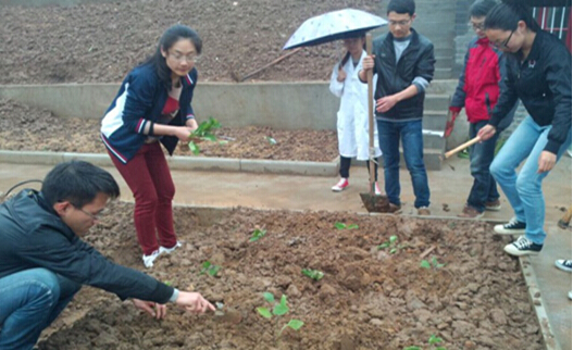 这天,朱雪云老师带着园林系12级园艺本科班的同学们来到农果园,她率先走进地里,向同学们讲解如何规划土地,哪一块该种茄子,哪一块该种辣椒,哪一块该种豇豆,为什么要这样安排及其合理性;在明白了土地的规划后,朱雪云老师又认真的讲解该如何种植好手里的蔬菜种苗。从为农果园辛苦耕地、施底肥的准备,到将育好的蔬菜种苗移栽到农果园,同学们上课的激情不曾稍减。