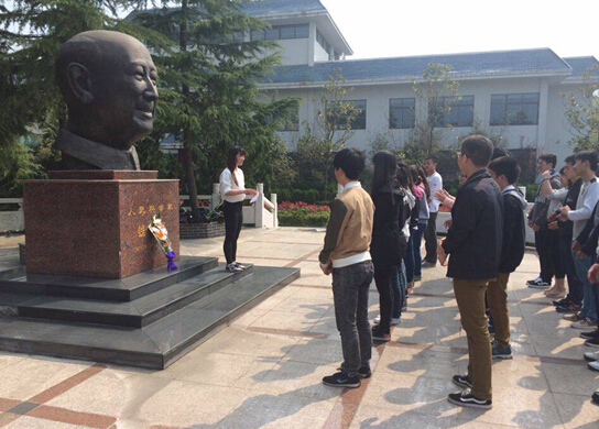 本网讯(通讯员 乔守晨)清明将至,为了缅怀“两弹一星”元勋钱学森院士,弘扬和继承钱学森精神,4月1日上午,2014级钱学森实验班三班的全体同学在钱学森广场举行了一场诗文诵读会,并向钱老铜像敬献鲜花表达敬意。